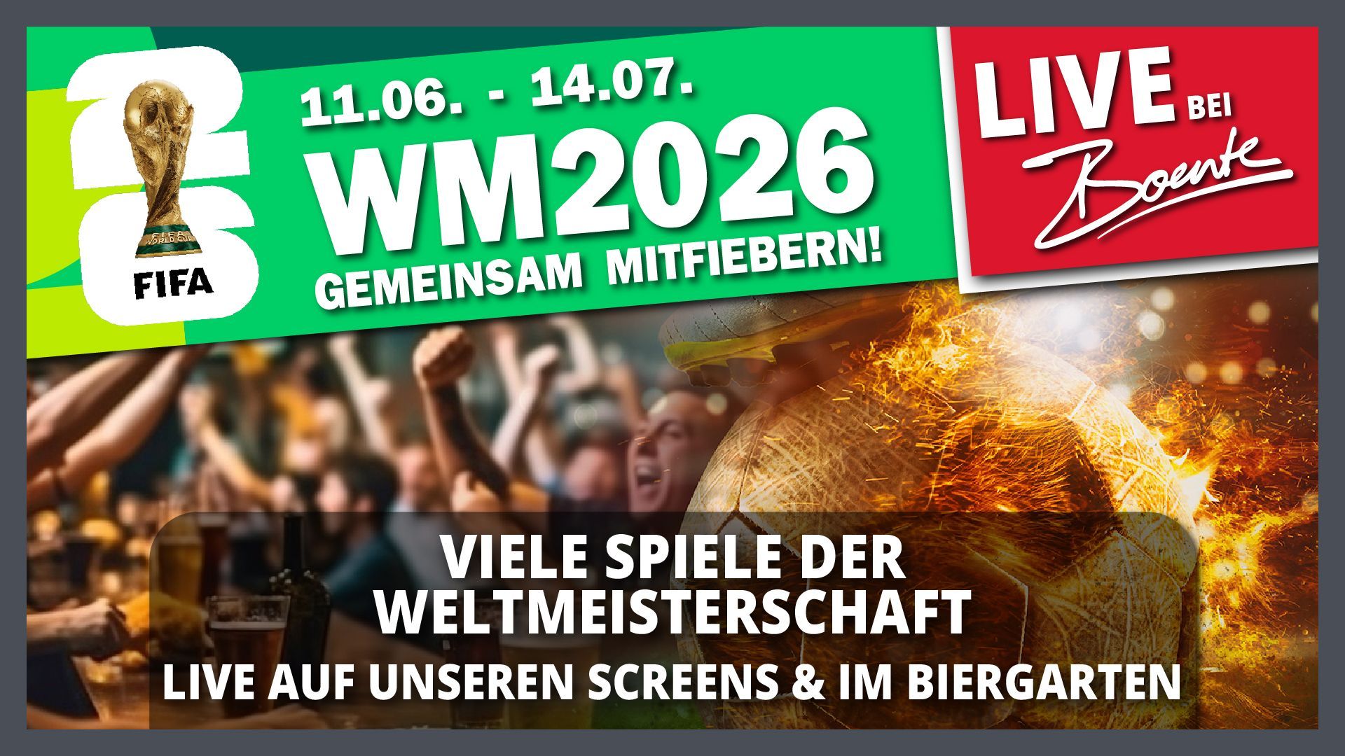 Fußball WM 2026 live bei Boente auf vielen Screens und Leinwand in der historischen Brauerei und im gemütlichen Biergarten. Eintritt frei